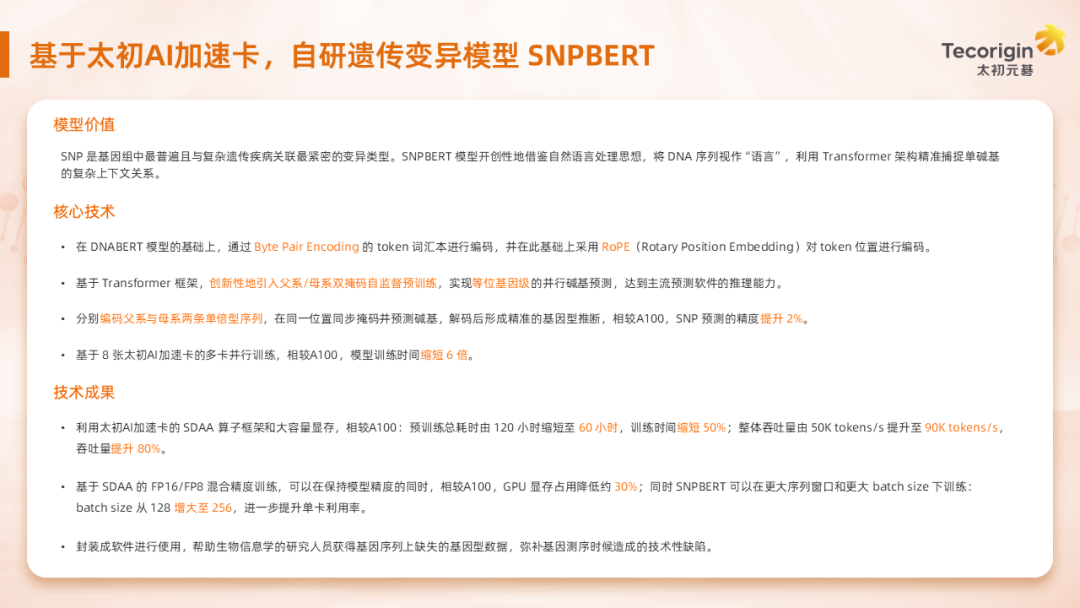 基于太初AI加速卡,自研遺傳變異模型 SNPBERT