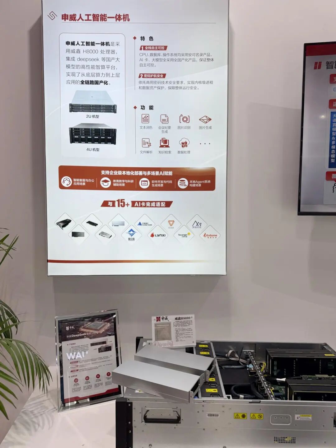大會期間,太初(無錫)電子科技有限公司(又簡稱“太初元碁”)攜手申威亮相,展出基于智算一體機的產(chǎn)教融合解決方案。據(jù)介紹,該產(chǎn)教融合解決方案以威鑫H8000 CPU為核心,威鑫H8000采用自主指令集架構SW64,內(nèi)部集成64個第四代申威通用高性能核心,相較上一代處理器,單芯片集成核心數(shù)翻番,性能提高4倍,實現(xiàn)了高算力卡點突破,綜合性能國內(nèi)領先,入圍安可名錄二級。同時,威鑫H8000自研SMT2硬件雙線程技術,采用128MB超大L3Cache緩存,支持國密算法SM2/3/4,安全性、易用性全面提升。