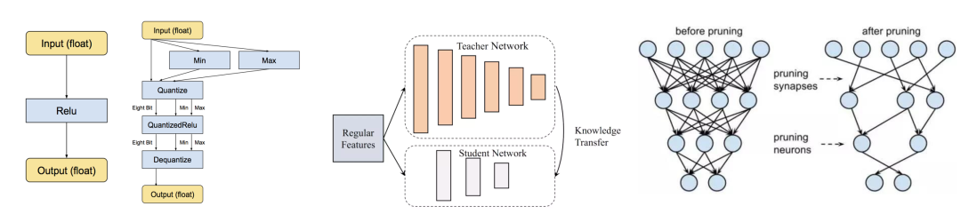 圖13 模型量化、模型蒸餾、模型剪枝算法示意,來(lái)自網(wǎng)絡(luò)